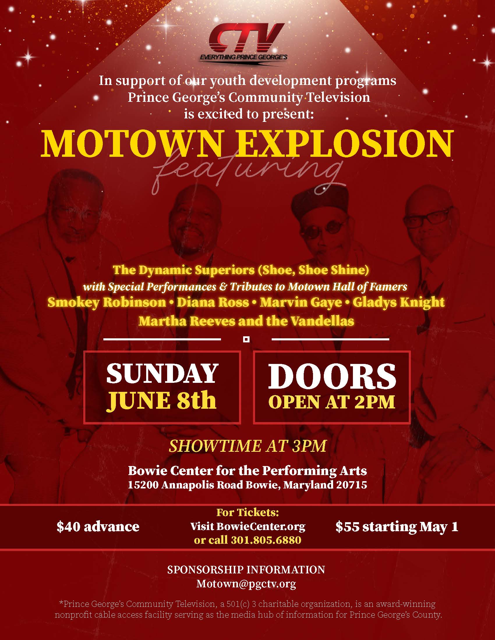 Click the Events page to secure your ticket for Motown Explosion and explore sponsorship opportunities. While you’re there, learn how you can help Save PGCTV and protect local media!